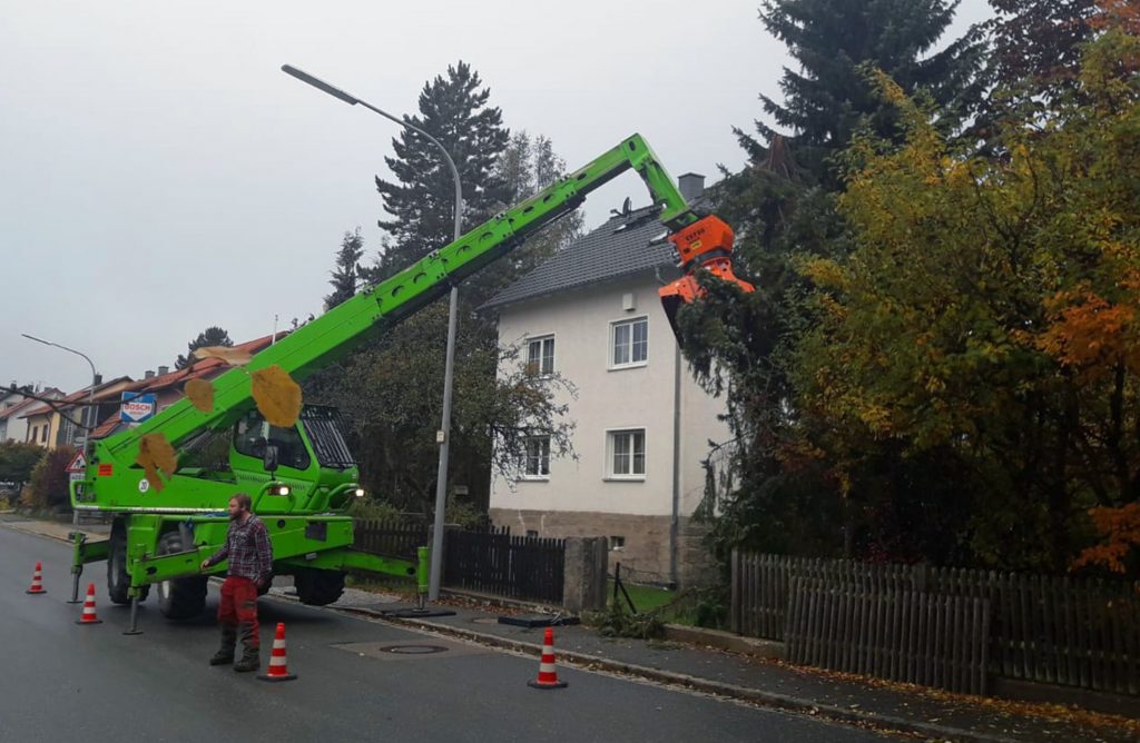 Mit Hilfe des betriebseigenen Fällkran ist es möglich, Bäume extrem sicher und effizient abzutragen. Vor allem im urbanen Bereich mit wenig Platz ist diese Methode oft die beste Wahl. So werden wir oft von Städten und Kommunen, aber auch als Subunternehmer für Spezialbaumfällungen, sowie im privaten Bereich gebraucht. Durch die hohe Sicherheit waren wir bereits mit dem Fällkran neben denkmalgeschützten Gebäuden und an Straßen schon oft im Einsatz. Da sich niemand im Gefahrenbereich befindet, ist diese Arbeitsweise auch für den Mensch das sicherste Mittel.