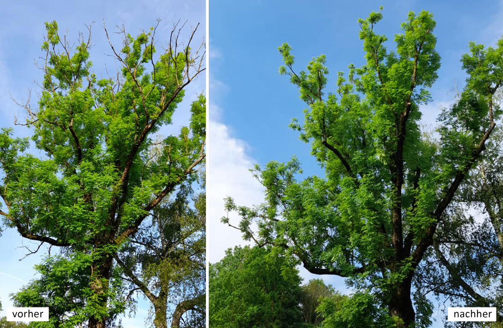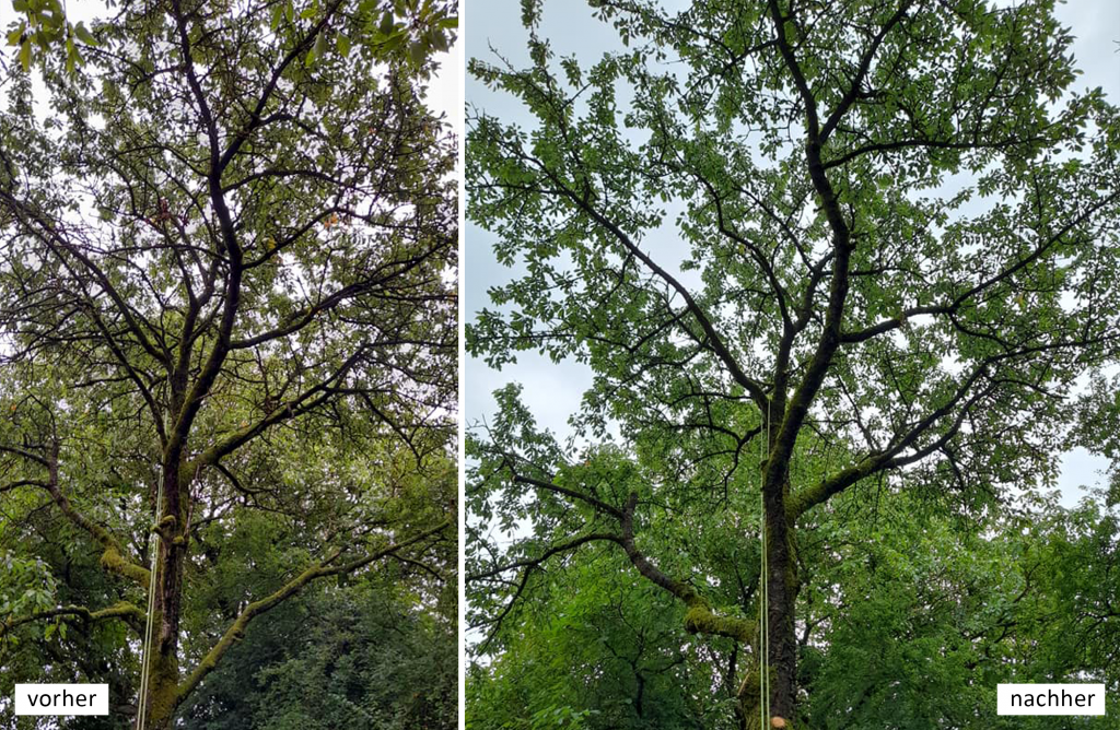 Um ein gesundes und vitales Baumleben zu fördern, ist es wichtig Schad- bzw. Defektsymptome früh zu erkennen und mit den richtigen Maßnahmen zu behandeln. Das kann z.B. die Entfernung von Reibeästen, Einkürzungen an Kragästen, die unter Schneelast zu brechen drohen oder auch die Nachbehandlung unfachgerechter Kappungsstellen sein. Das Einkürzen von Ständern und Entfernen von absterbenden bzw. angebrochenen Kronenteilen gehört ebenfalls zu den Maßnahmen.